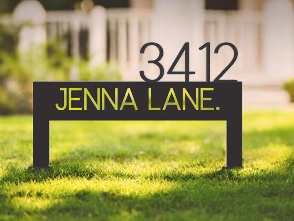 (Click on each item to order: House Numbers-Amazon$14, Doormat-Amazon$27, Mailbox-Amazon$34, House Numbers-Amazon$9, Address Sign-Amazon$26, Rabbit Pot Feet-Amazon$34, Square Metal Planter Box-Amazon$100, Rectangular Metal Planter-Amazon$109 and Dog Pot Feet-Amazon$35)